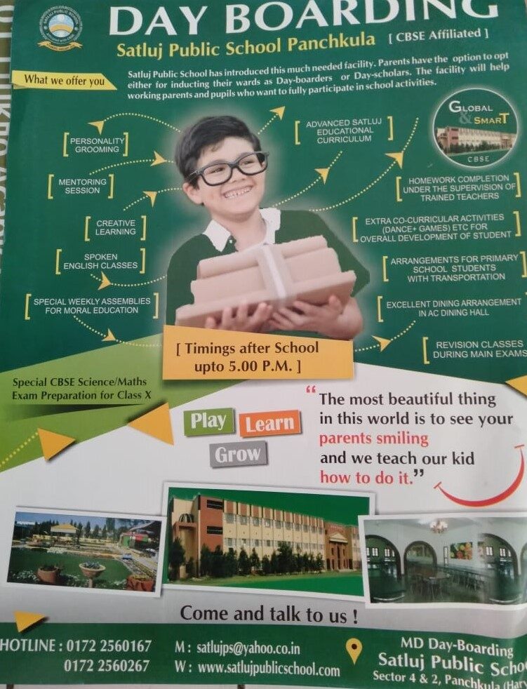 Satluj Public School has introduced this much needed facility. Parents have the option to opt either for inducting their wards as day-boarders or day-scholars. The facility will help working parents and pupils who want to fully participate in school activities. The following activities will be co-ordinated by the staff:-